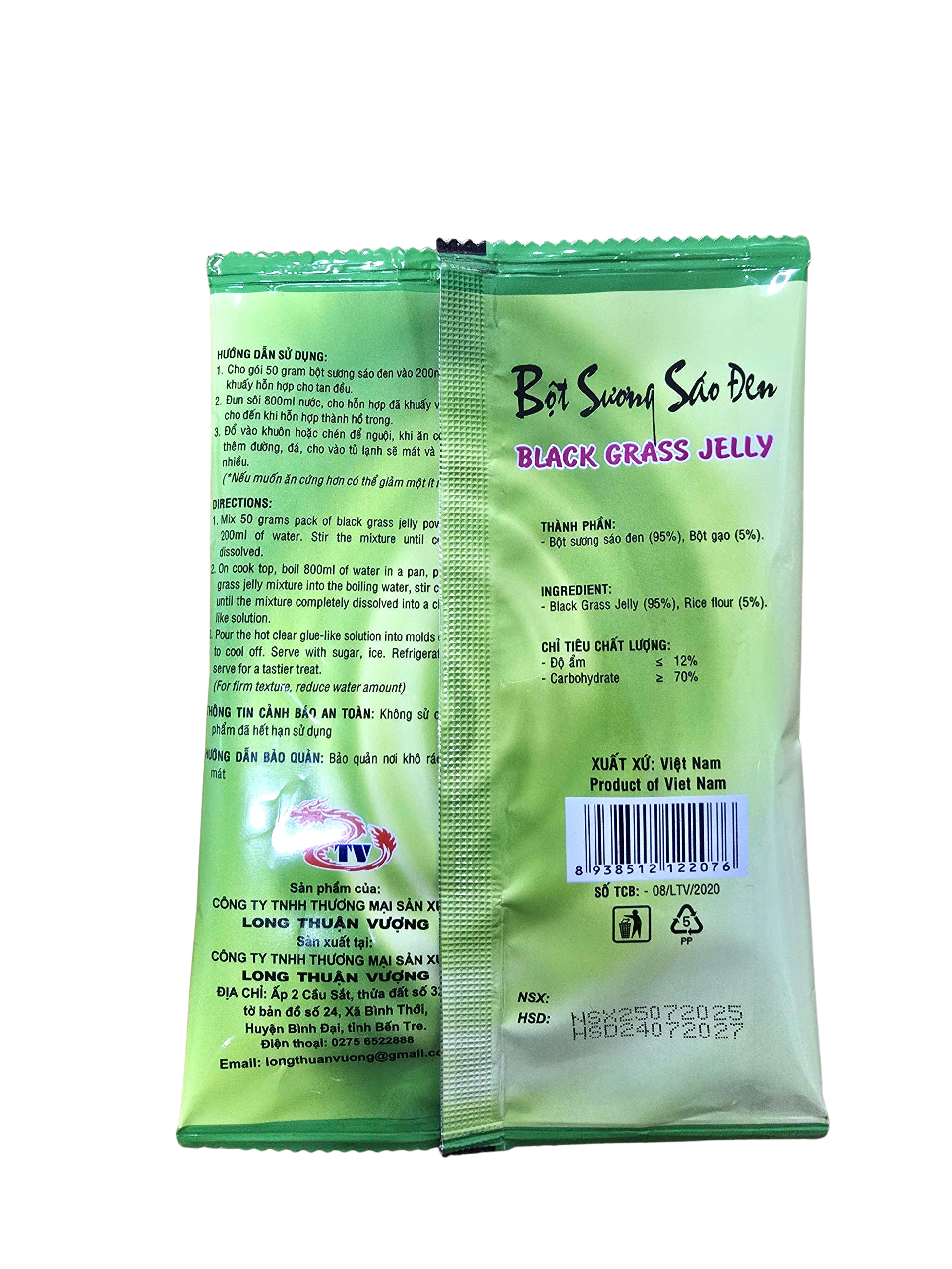 - Bột sương sáo đen (95%), Bột gạo (5%)