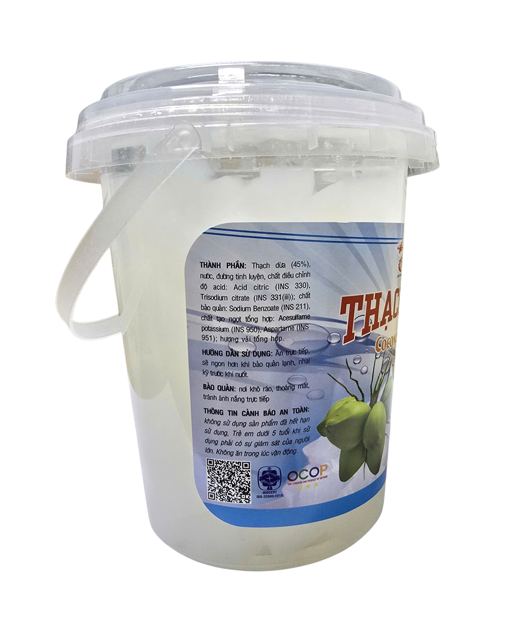 Đặc điểm nổi bật của sản phẩm: Thạch dừa được làm từ dừa tươi và đường tinh luyện, an toàn cho sức khỏe. Vị ngọt thanh mát, dai giòn thú vị, mang đến trải nghiệm độc đáo. Bao bì đẹp, tiện lợi và lý tưởng cho các buổi dã ngoại, picnic hay bữa ăn nhẹ nơi công sở.